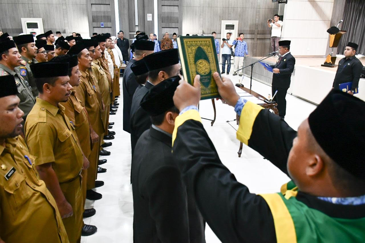 Banda Aceh (KANALACEH.COM) – Wali Kota Banda Aceh, Aminullah Usman melantik 106 pejabat eselon II, III dan IV di lingkungan Pemko Banda Aceh. Pelantikan dan pengambilan sumpah jabatan dilakukan, Senin (17/2) di Aula Lantai IV, Gedung Mawardy Nurdin Balai Kota Banda Aceh.