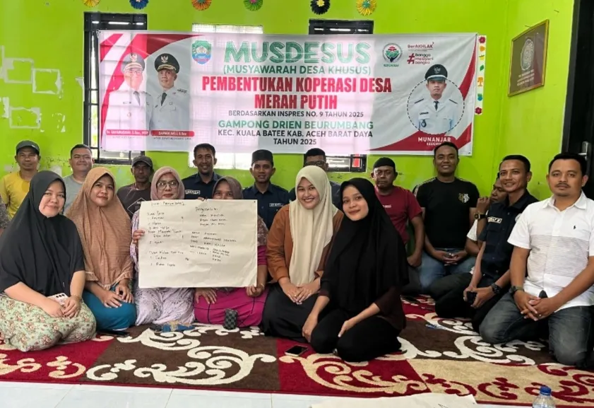BLANGPIDIE (KANALACEH.COM) – Proses musdesus pembantukan koperasi merah putih di Gampong Drien Beureumbang kecamatan Kuala Batee kabupaten Aceh Barat Daya (Abdya) resmi digelar dengan melibatkan pertisipasi aktif dari masyarakat. Senin 19-05-2025.