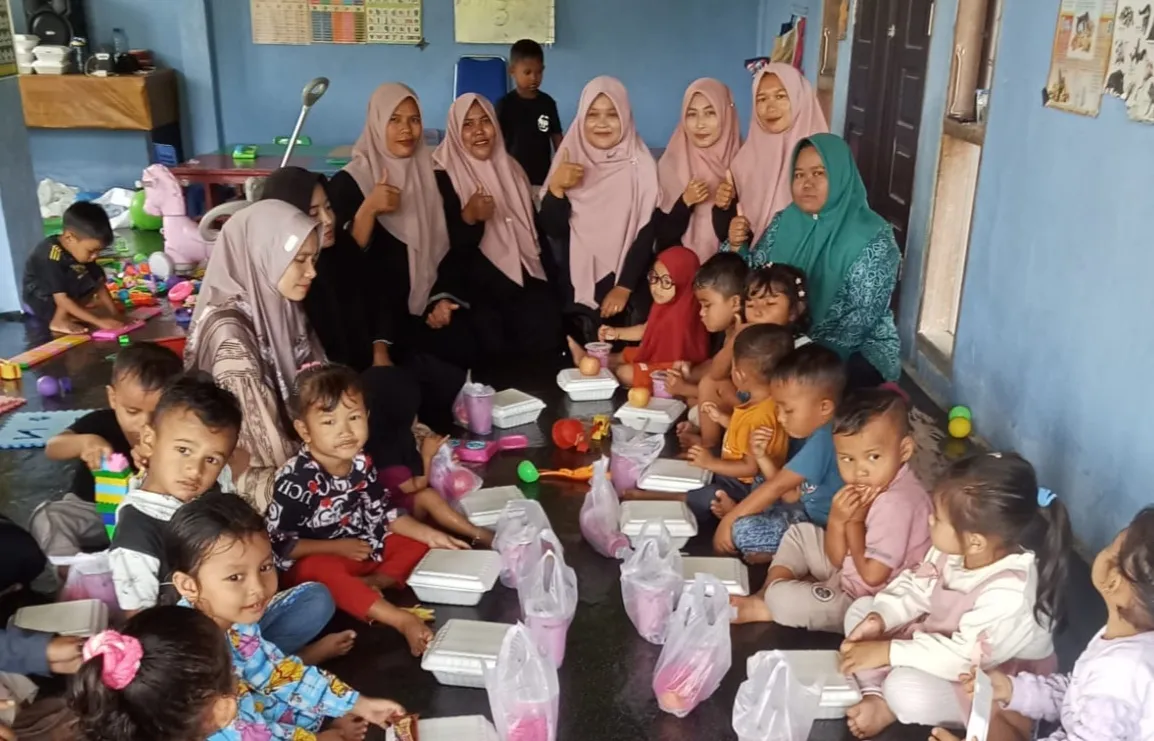“Makanan bergizi yang kita berikan itu diolah langsung oleh para guru-guru PAUD”. Katanya