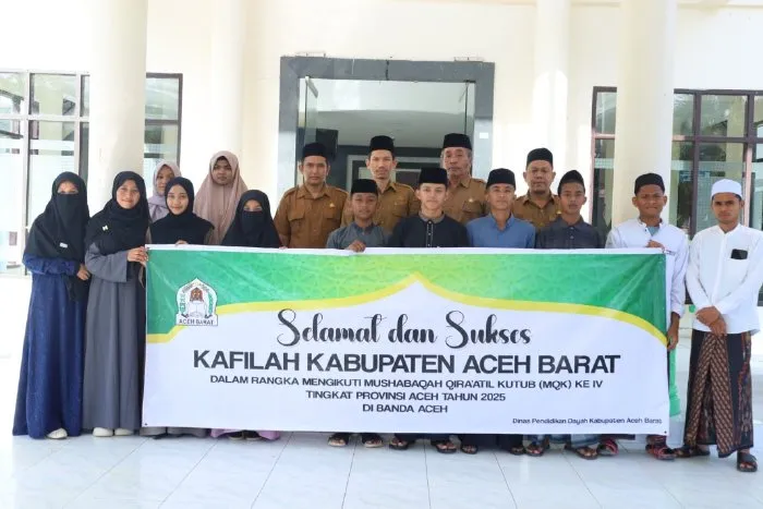 Aceh Barat (KANALACEH.COM) – Bupati Aceh Barat, Tarmizi melepas kafilah Musabaqah Qira’atil Kutub (MQK) Aceh Barat yang akan berlaga pada ajang MQK tingkat Provinsi Aceh di Banda Aceh, yang berlangsung mulai 19 hingga 22 Agustus 2025 yang digelar di kantor Bupati Aceh Barat, Selasa (19/8/2025)