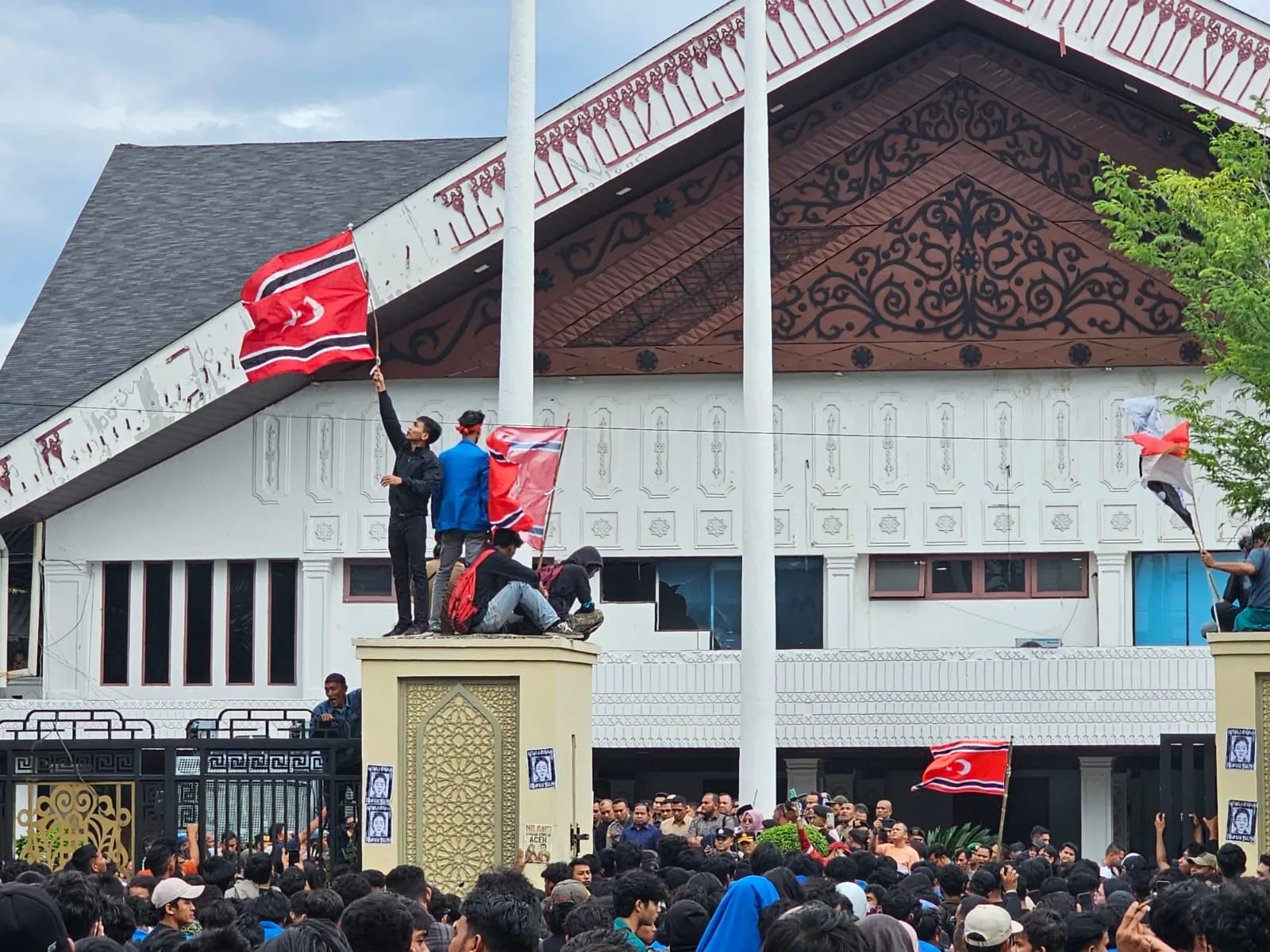 Massa yang mengibarkan bendera tersebut juga meneriakkan ‘Aceh Merdeka’ berulang kali dan sempat memaksa untuk menaikkan di tiang bendera halaman kantor DPR Aceh.