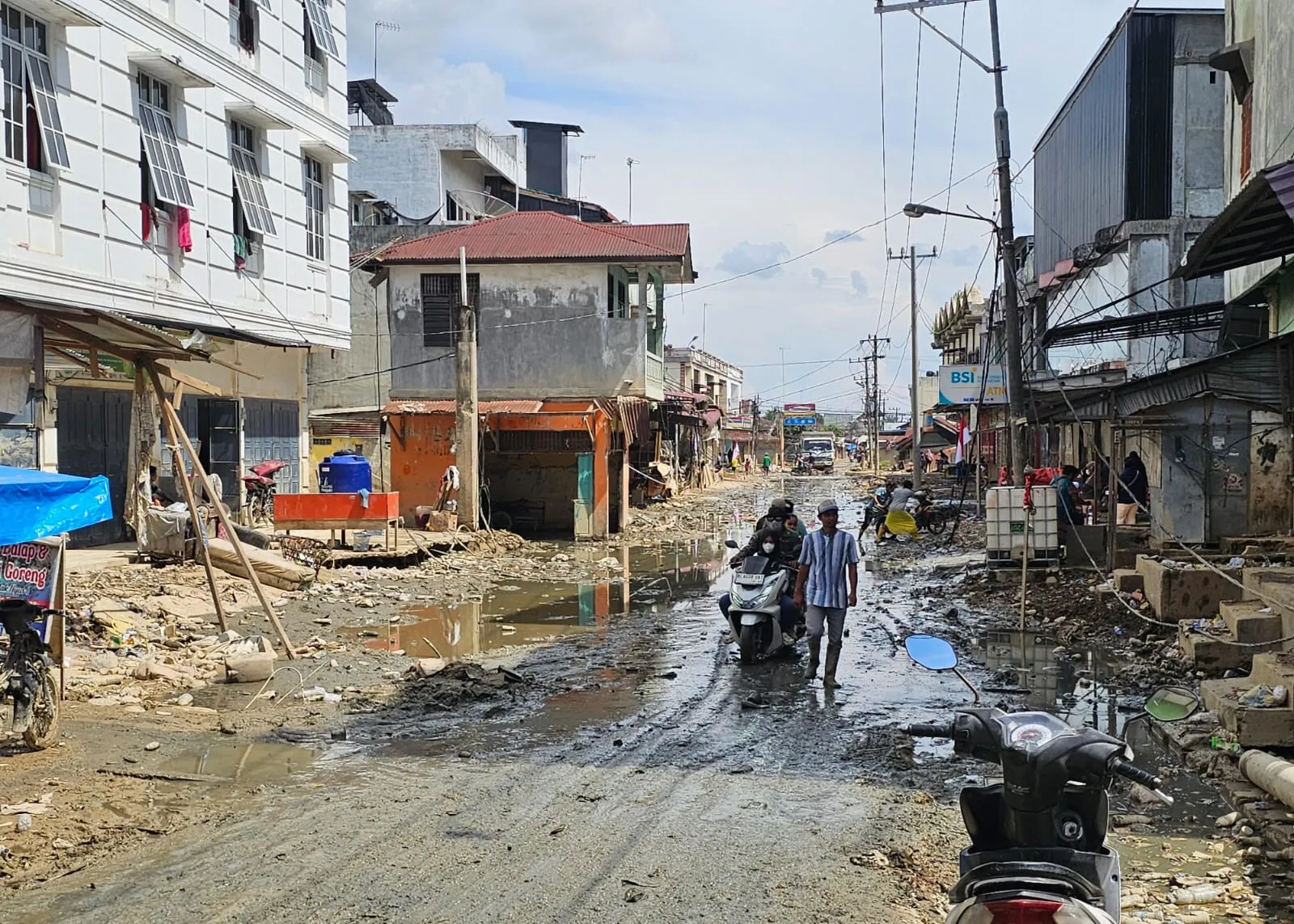 Suasana pusat perekonomian di Aceh Tamiang setelah 31 hari bencana ekologis. (Kanal Aceh/Randi)
